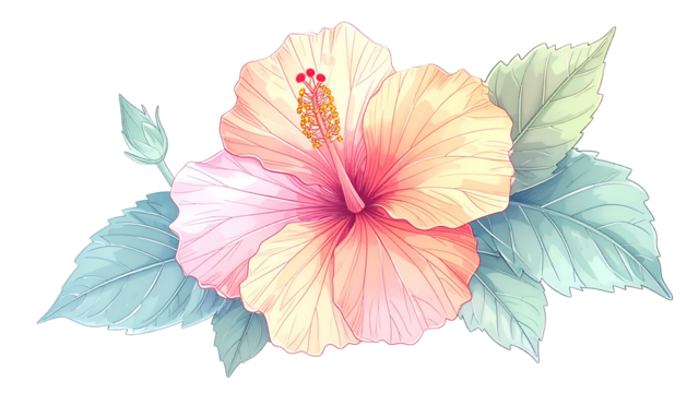Vibrant pink and yellow flower illustration on transparent background