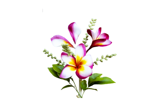 red, white, yellow flowers frangipani local flora arrangement flat lay postcard style