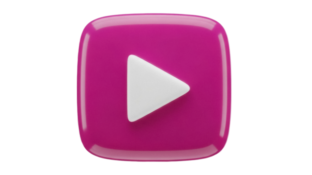 Isolated video player button with glossy pink square and white play arrow for app or web use
