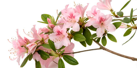 Blossoming pink azalea flowers nature scene view isolated on transparent background