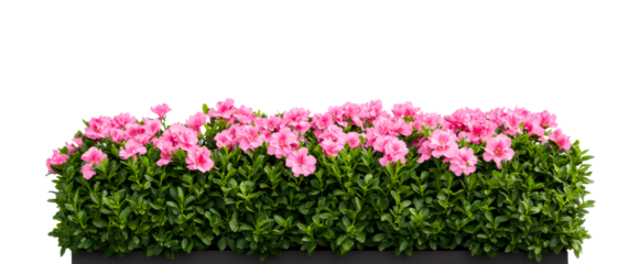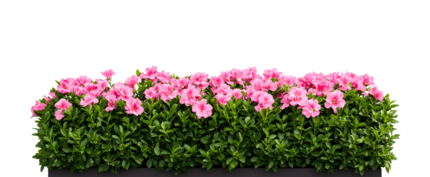 Dense bush, vibrant pink azalea flowers and green leaves pink flowers, isolated on white or transparent background, AI
