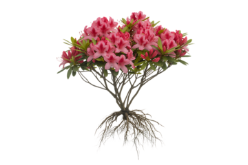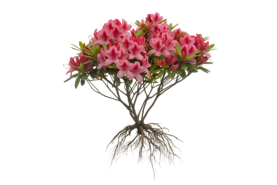 Vibrant pink azalea bush with intricate root system isolated on transparent background3