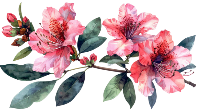 Close up of pink azalea rhododendron flowers isolated on white or transparent background PNG for spring and floral design concepts