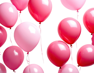 Pink balloons floating on a transparent background, perfect for celebrations, birthdays, and party decorations