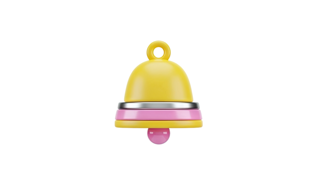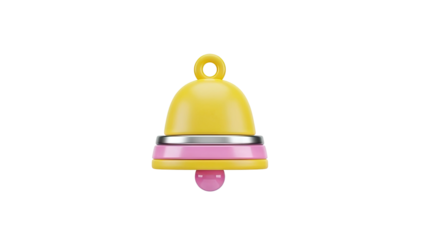 3D Render of a Yellow Bell with Green Handle and Pink Ball