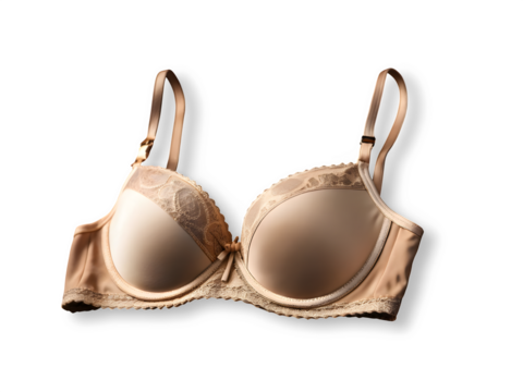 Tan colour bra isolated on transparent background.  Beautiful and attractive design with fashionable clothes for women.