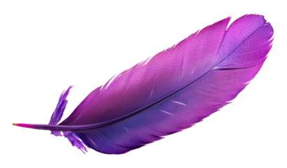 Single purple and pink bird feather, cut out - stock png.