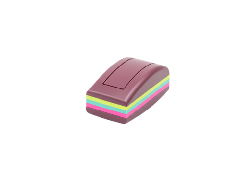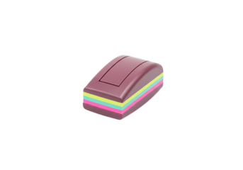 Stacked Neon Sticky Notes in a Plum Colored Holder Angled View