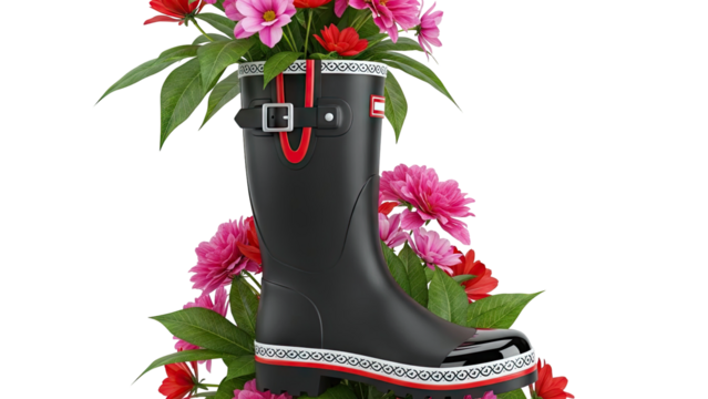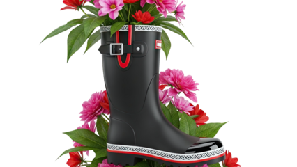 Iridescent butterfly wing patterned lace up boots isolated on a transparent background footwear