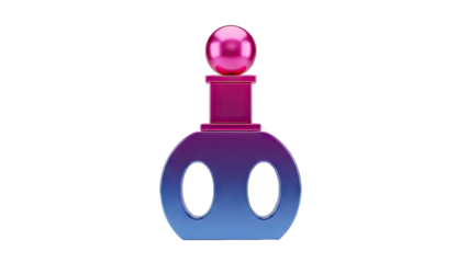 3D Pink pump bottle with blue abstract shapes and spheres on transparent background