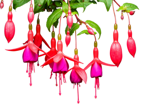 Fuchsia Shrub with Hanging Flowers, isolated on a transparent background