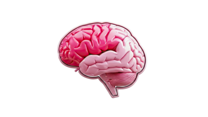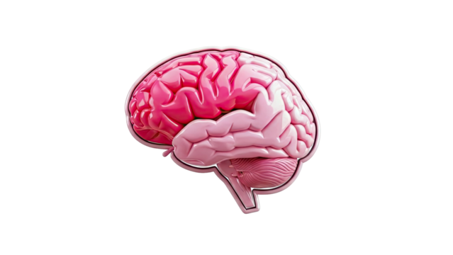 Realistic pink brain model showcasing detailed anatomy and structure for educational purposes, isolated on transparent background