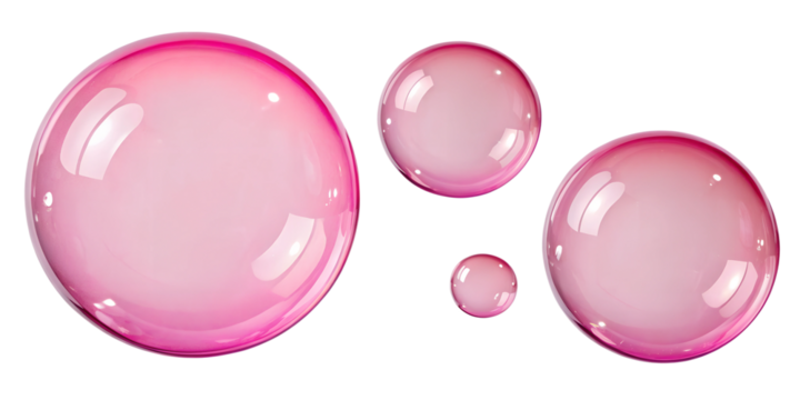 Three Different Shiny Pink Bubbles on White Background for Playful Visuals, PNG Transparent