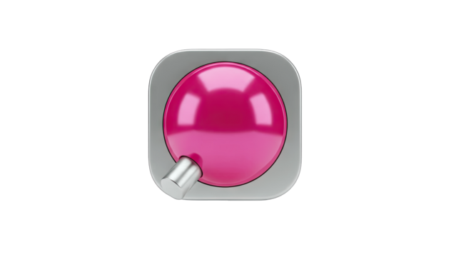 Isolated pink button on white background. This close-up studio shot presents a vibrant, glossy sphere ideal for graphic design, UI elements, or highlighting a single color