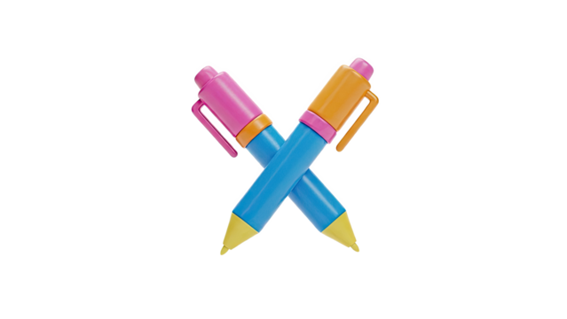 Crossed Blue Pens with Pink and Orange Caps