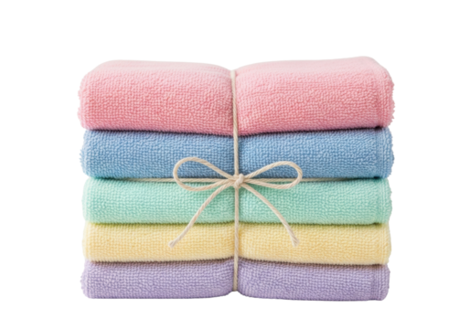 Colorful Collection of Soft Bath Towels Stacked Neatly for Use, PNG bundle collection, Isolated on Transparent Background