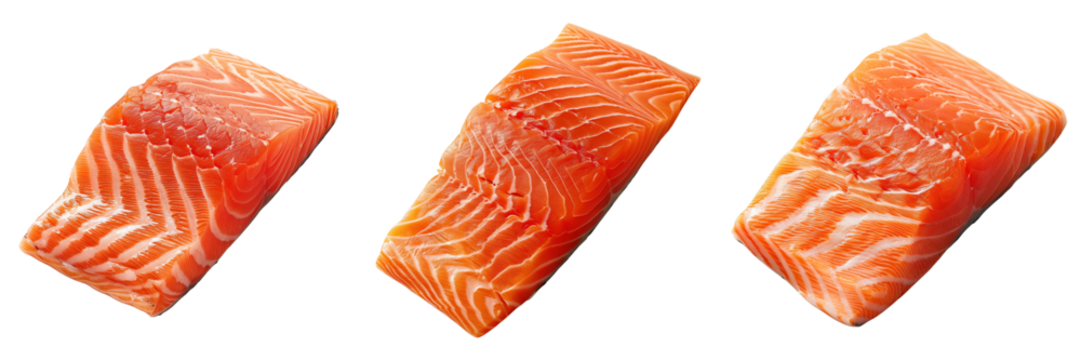 set of fresh salmon fillet with a vibrant pink color and firm texture on a transparent background