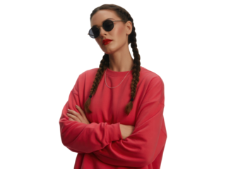 3D Cartoon Woman in Hijab with Glasses and Crossed Arms