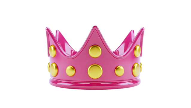 A 3D pink crown figurine, designed with elegant curves and sparkling jewels, symbolizing royalty, beauty, and luxury. The crown, set against a transparent background, brings a glamorous and regal touc