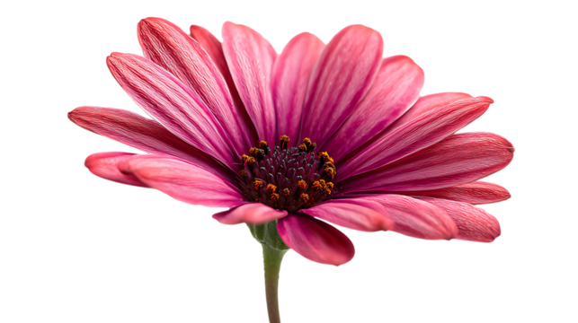 Closeup of a pink african daisy osteospermum flower with detailed petals on transparent background