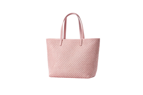 Pink quilted leather tote bag shown from front angle, structured design, isolated on a transparent background