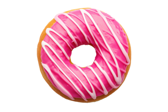 A delicious pink donut with colorful sprinkles, glazed and tempting. background removed