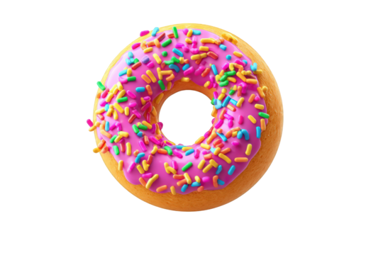 Delicious pink donut with colorful sprinkles sweet treat food tasty candy on transparent background