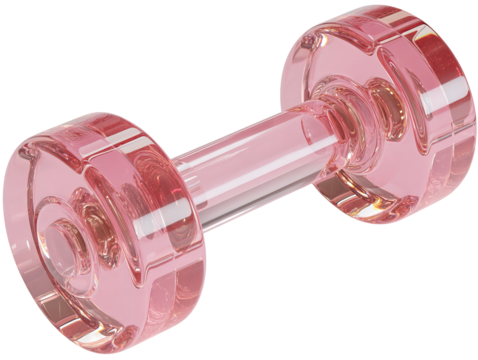 Clear acrylic dumbbell pink color sharp details on transparent background
