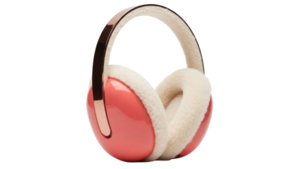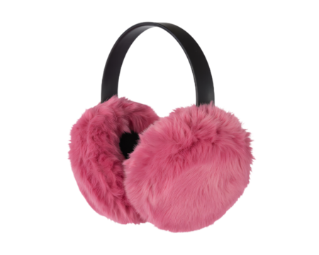 A pair of vibrant pink faux fur earmuffs to keep your ears warm during cold weather isolated on transparent background