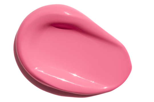 Smear of pink cream, balm, conditioner with banana, egg or chamomile on an empty background. Isolated.