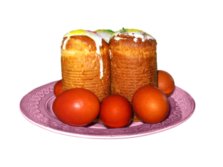 Assorted Easter Eggs in Wicker Baskets Isolated on Transparent Background Keywords: easter eggs