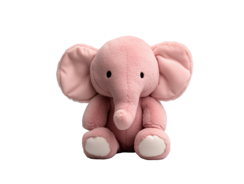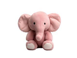 cute, soft pink elephant plush toy with floppy ears and  cheerful face isolated on transparent background