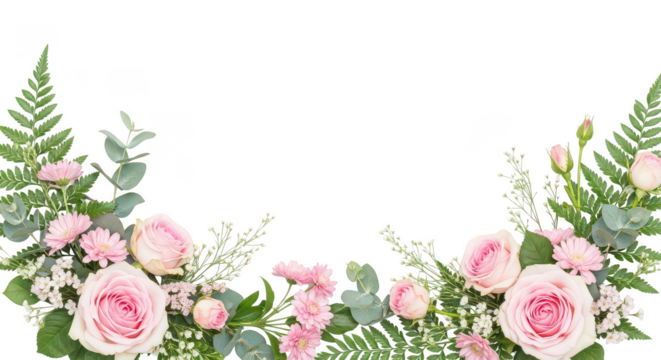 Flat floral trim with pink daisies on transparent background