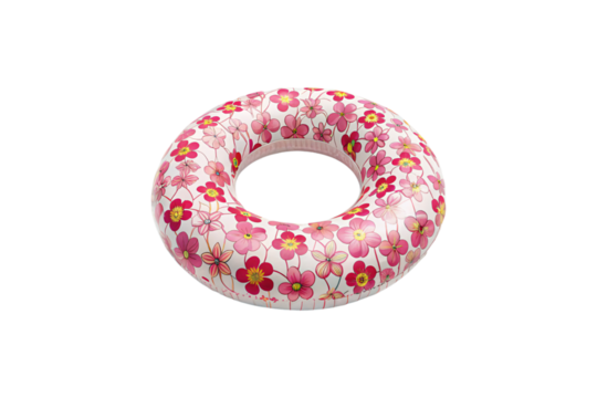 Pink floral swim ring featuring small scattered flowers in various pink shades, isolated on a transparent background