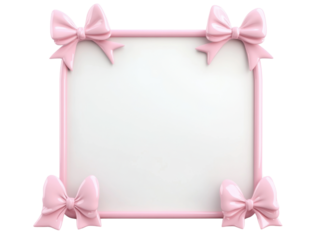 A square pink frame adorned with bows, providing a playful and cute backdrop for photos or messages.