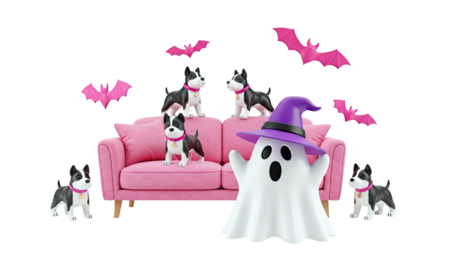Isolated Pastel Pink Ghost Shape for Halloween Holiday Cute Design Fun 3D Rendering
