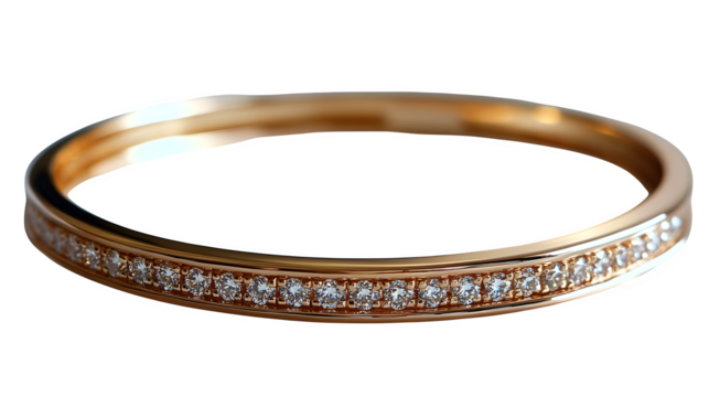Elegant Gold Bangle Bracelet Product Shot with Embedded Diamonds isolated PNG with Transparent Background