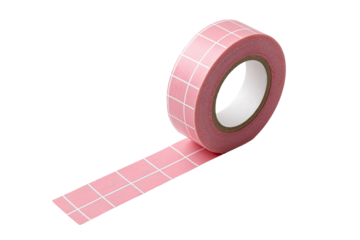Pink Grid Pattern Adhesive Tape Roll with Unwound Strip Isolated on Transparent Background