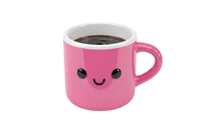Minimalist pink ceramic mug with steaming hot beverage illustration