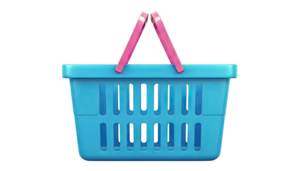 Blue shopping basket with pink handles on a white background