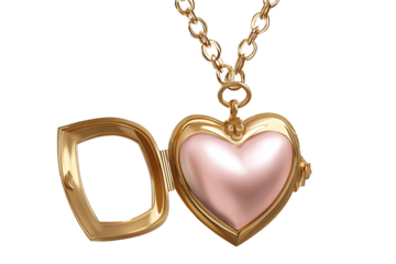 Open Gold Heart Locket with Pink Interior and Chain, Isolated on White Transparent Background