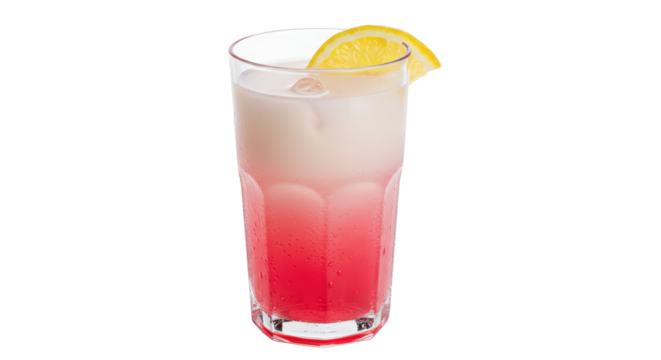 Tall Glass of Pink Lemonade with Ice and Lemon Slice, Front View, Isolated PNG