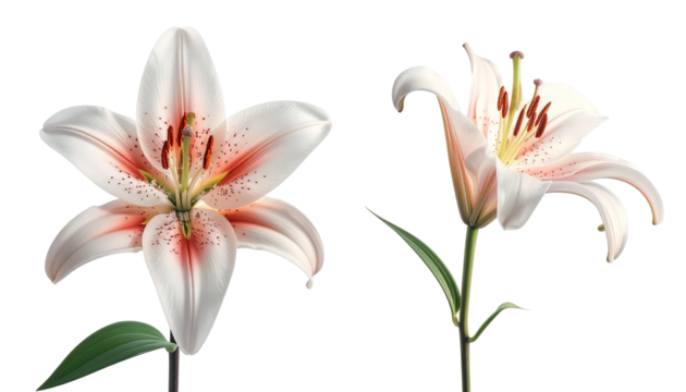 Blooming pink lily pair isolated on transparent background