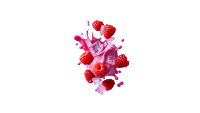 Vibrant pink liquid splash with droplets and smooth curves isolated on transparent background