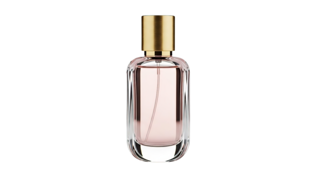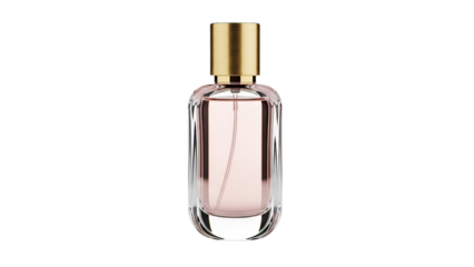 Luxury perfume bottle with golden cap elegant pink liquid isolated on transparent background feminine beauty
