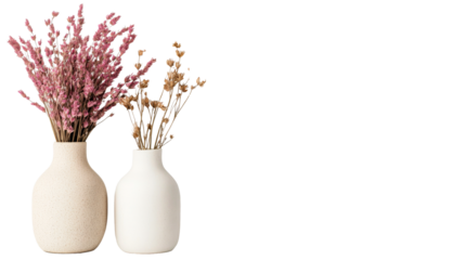 Vases with decorative dried flowers, minimalist style, cut out transparent