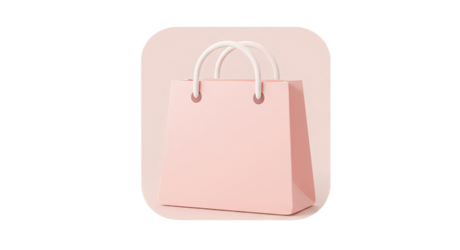 A soft pink shopping bag icon isolated on transparent background, ideal for app design and ecommerce themes