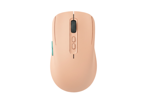 Peach-colored wireless computer mouse isolated on transparent background, ergonomic input device for office and gaming use PNG