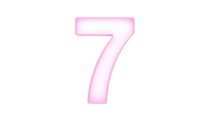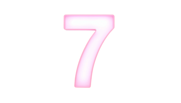 A luminous, numeral seven with a pink glow outlines a white interior, set against a solid black background