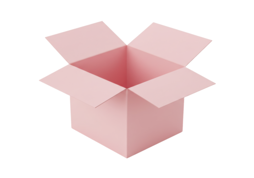 Elegant pink gift box with red ribbon and hearts on transparent background